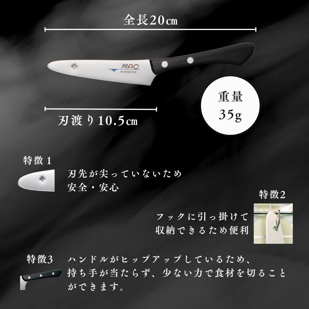 他の画像を見る "元祖マック包丁" 薄く、軽く、驚くほどの切れ味で、料理の楽しさが広がります。刃先が丸い包丁の先駆者はMAC。累計販売本数100万本突破。 AB-60 / 先丸万能型包丁17cm 人気 オススメ 当店特別価格 ¥ 6,930 税込 カートに入れる お気に入りに登録する