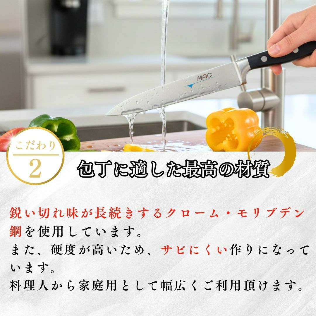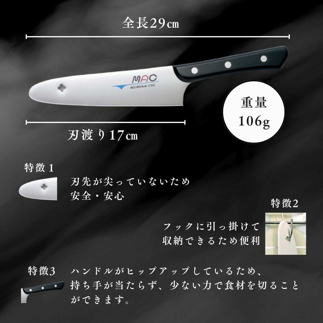 他の画像を見る "元祖マック包丁" 薄く、軽く、驚くほどの切れ味で、料理の楽しさが広がります。刃先が丸い包丁の先駆者はMAC。累計販売本数100万本突破。 AB-60 / 先丸万能型包丁17cm 人気 オススメ 当店特別価格 ¥ 6,930 税込 カートに入れる お気に入りに登録する