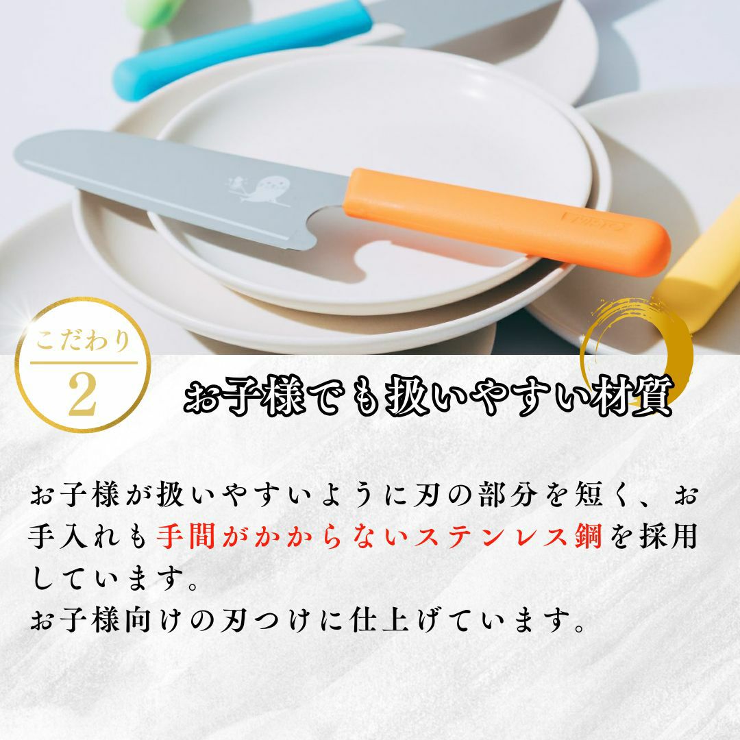 他の画像を見る 子供シェフ誕生♪ お子さんが喜んでお手伝いしたくなる、可愛いキッズ包丁 5色からお好きな色をどうぞ。 KK-50 / キッズキッチンナイフ12.5cm 人気 オススメ 当店特別価格 ¥ 2,750 税込 カートに入れる お気に入りに登録する