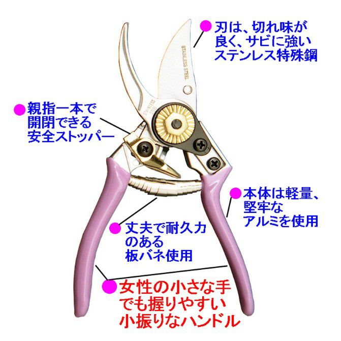 他の画像を見る ハンドル部分はアルミダイキャストを使用し、軽量でしかも大変堅牢に 仕上げいます。 プロ仕様 スーパーハイパワー剪定鋏 SE-11 人気 オススメ 当店特別価格 ¥ 3,300 税込 カートに入れる お気に入りに登録する